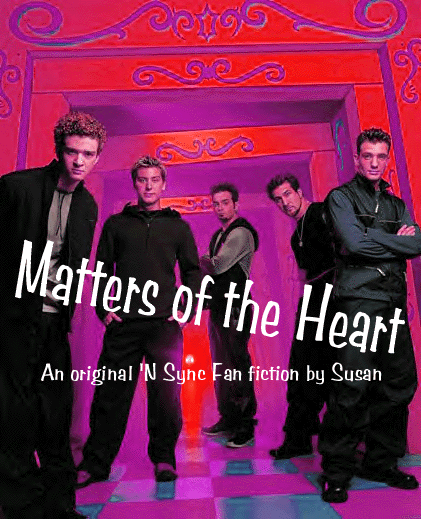 Okay this is Susan's attempt at an *N SYNC story. You know the drill I am in no way shape or form associated with *N Sync their management or any other such person heck I've never even met the guys (sob)so personalities may be wrong. Don't take offence to any part of this story if you do just stop reading it. I don't write stories to be mean cold cruel or any such nonsense and neither does any other author on this page. Just also please keep in mind I started this story when I was not an *N Sync fan and that may or may not be obvious. Thank you and good night!If you can think of any song titles for the un-named tracks (meaning any that simply say "this track is here") please send em my way