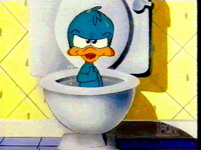 When we think of JC we have a tendancy to associate the puppy with Baby Plucky of Tiny Toons fame, mainly because JC Puppy likes to "push da buttons" and he's very assertive about what's HIS! Can't you just SEE the resemblance??? :)