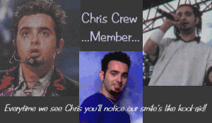 What is the Chris Crew, you ask? It's a clique or fanlisting of loyal Chris fans dedicated to give Chris support! How do you join? Fill out the form and I'll add you to the Crew! Are there rules? Well you have to love Chris (obviously), you don't have to have a website but if do, you MUST put up the code on your site.