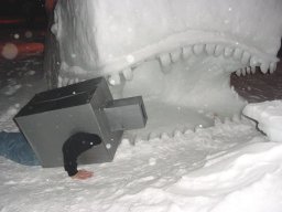 The Pisst-Off Androids also enjoy the snow. Here they are enjoying some of the snow statues.