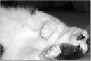 [picture coming soon] when they do this they look like they are sitting on a nest. one night while watching tv i pointed to mia and said, "look! she's a chicken!" dh got very serious and said, "no, amy, she is a cat." (like i really thought she was poultry??) from then on, my cats have been known as chickens. to me at least.