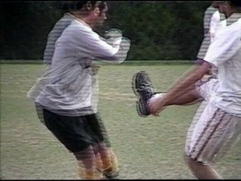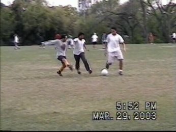 An attempt to steal the ball from Ismail the Elf. He fails though, but still, manages to scare off Ismail.