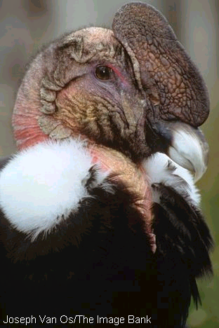 Este ave de presa vive en la Cordillera de los Andes, en América del Sur. Alcanza más de 130 cm de largo y cerca de 3 m de envergadura. Se alimenta de cadáveres de grandes mamíferos, aunque también caza crías y puede ir hasta el mar en busca de peces muertos. No construye nidos, sino que pone sus huevos en agujeros en el suelo o en las cavidades de los acantilados. |