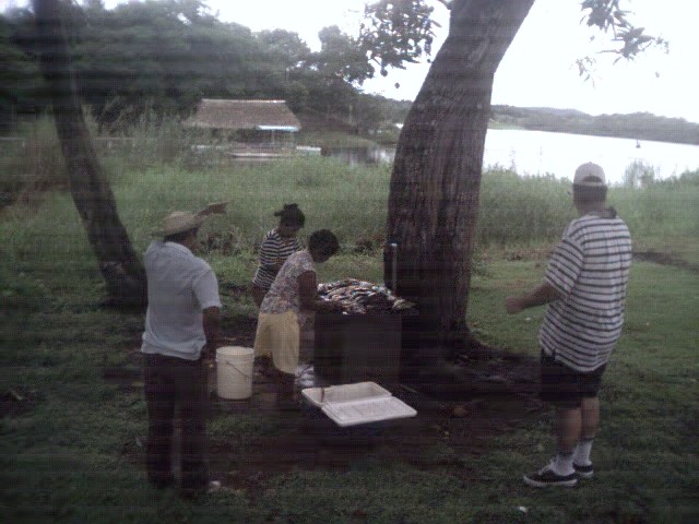 The folowing are pictures from my stay here in Panama......I have been fishing here at this particular place twice. Once when I lived here 98-99. Two last week. No....The fish you see are mostly small mouth bass.with some others. There are over 100 fish on that table. The small ones caught were thrown back. There were four fishing. I am taking the photos. My father, my step-brother, and the guide 'Tito Martinez'. The place is Arenosa, bad spelling. 7 hours, duing the rainy seaon. That blue cooler was filled to the top, with the extra fish just thrown in the boat. Total is was about 70 dollars for this trip. 10 went to the ladies cleaning the fish, and making fillets out of them. It is about an hour and a half from the city, where I am staying. The quality of the pics are pretty bad...the camera was cheap 'free'. Three of us used normal line and reels. The guide fished by just line, which is normal for him. The bait were live minnows. A few 'poping lures' happend to be used by my father and the guide a few time to get the fish biting.