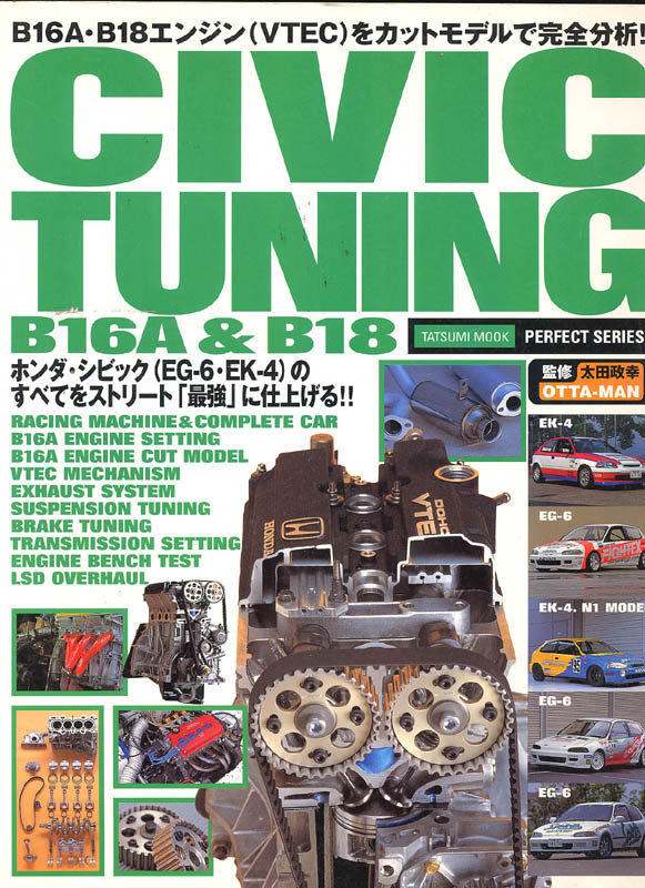 Civic Tuning (ISBN 4-88641-241-6) was originally published in 1997 by Tatsumi Publishing Co. With amazing detail it covers such topics as: