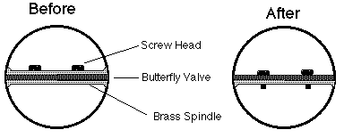 Remove your throttle body. Does it open all the way? Mine opened only to about 85 degrees not 90. Two minutes filing the bump stops fixed that. I removed the top half of the brass spindle for better airflow. You have to remove TPS sensor to slide the shaft out. Then you have to cut the portion that does not contain treads. This alone gave about 5% increase in area. The next step would be to countersink the two screw heads. Don't forget to Loctite the screws.
