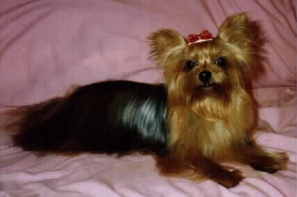 This is a picture of my Yorkshire Terrier "Castlebar's Sings A Cricket"