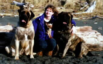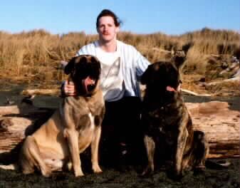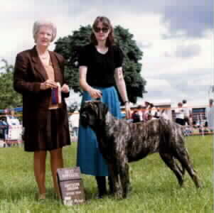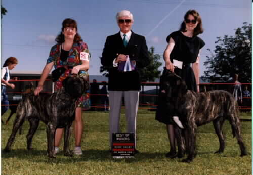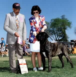 These are my first two Mastiffs. On the left is Brite Star's La Osa Grande winning Best Opposite Sex and CH Britestar's Mucho Grande winning Best of Winners (prior to finishing his championship).
