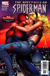 PENCILLER: Scott Eaton COVER BY: Greg Land INKER: Cam Smith STORY TITLE:  Sins Remembered: Sarah's Story - Part Three REVIEW:  Peter Parker recently learned of a secret affair between Gwen Stacy, his late girlfriend, and Norman Osborn, the Green Goblin, during which Gwen became pregnant. Osborn arranged for her to give birth to their twins in France. These twins – Sarah and Gabriel – are now fully grown, the Goblin formula in their blood resulting in superhuman strength, but also in extremely rapid aging. After Peter informed the twins about the truth of their parentage, Gabriel became violent, eventually injecting himself with Goblin serum and becoming the Gray Goblin. After being shot by policemen and receiving a blood transfusion from Peter, Sarah shot her brother rather than letting him harm the man who saved her life. Gabriel's whereabouts are currently unknown. Weeks later, Peter received a phone call from a doctor in Paris, informing him that Sarah was hospitalized after trying to commit suicide. He left immediately for France, feeling responsible for Sarah's well being. After becoming worried about Peter being alone in another country with a dead-ringer for his former girlfriend, his wife Mary Jane decided to follow Peter to France. Meanwhile, Sarah and Peter have left the Stacy estate in France, where Peter is reluctantly staying, to take a tour of the city. Little does Peter know, Sarah is becoming increasingly dependent on painkillers, and a mysterious figure has been following the pair, threatening them at every turn. ACT 1: Peter and Sarah are sitting down for their picnic at the Père Lachaise Cemetery. A sniper appears to be aiming a rifle at Peter’s head from somewhere in the cemetery. Peter's spider-sense it set off when the gunman pulls the trigger and he instinctively dives towards Sarah and tackles her just as a bullet zooms past them. Telling Sarah to stay down, Peter swings off to go after the sniper. Peter does not find the gunman but Sarah does find him, just as he's about to take his leave. She grabs him by the throat and what she does with him is not revealed. ACT 2: As Mary Jane makes her way through Charles de Gaulle Airport, she is unaware that someone is spying on her. Back at the Osborn Mansion (or Stacy Estate), Peter demands to know why somebody would want to kill her. Sarah evades the issue and tells Peter there is no need to overreact and that THEY are only trying to scare her. Peter replies that one way or another, he is going to find out what's going on with or without her help. Back at the airport, Mary Jane is accosted by a Frenchman named Luc Beldron who offers to help her find Peter. They get into a cab together and go out in search of Peter. ACT 3: Back at the mansion, Sarah finally explains why these people have been trying to kill her. One night years ago, she and Gabriel were out looking for fun when they ran into a guy named Bruce, a known drug-dealer, smuggler and gambler. She liked Bruce at once but Bruce couldn't care less for either her or Gabriel. That is until he saw what they were capable of and what they could offer the group. So Bruce adopted them into his gang. This was around the same time that she and Gabriel started having headaches all the time. Fortunately, Bruce had drugs to make them go away but they were very expensive. Since she and Gabriel did not get an allowance from Norman because they were technically not supposed to leave the house anyway, they started delivering packages for Bruce and got paid for it. But about a year ago, Bruce and his guys disappeared and were never heard of again. That's when Monsieur Duprés arrived on the scene and took over what was left of Bruce's operation. The word on the street was that he was connected to organized crime; either you worked for him or you paid the price. They didn't want anything to do with him so they tried going independent but they ended up spending more on the drugs they needed to make the headaches go away than they were bringing in. So they had no other choice but to start working for Duprés. After a while, Gabriel concocted a plan in which they would still a huge shipment of drugs from Duprés, sell it themselves, and keep all the money. She didn't want to go along with it so Gabriel went without her and now he’s gone and she's left holding the bag. Peter asks how much she owes them. Sarah replies one million Euros (1.5 million US dollars). Peter is flabbergasted and asks Sarah if THEY know that she is involved. Sarah replies that THEY don't want her but Gabriel. She adds that they're only after her to try and find him and maybe recover their money or the drugs. Peter replies that the last time he saw Gabriel is when he disappeared into the East River. He asks Sarah if she heard from him or if she has any idea where he is. Sarah screams that she doesn't. Peter asks her then if she knows where the money or the drugs are. Sarah tells Peter that it doesn't make any difference where they are. As she walks away from him, she tells him to go home, since he's done what he came to do. Peter tells Sarah that she is being unfair and that he came all this way because he didn't want to lose her. ACT 4: Outside the mansion, the cab carrying Mary Jane arrives at the mansion, closely watched by an individual sitting in a car alongside the road. MJ climbs out of the cab and Luc tells her that he will stick around since it doesn't seem that there is anybody home. MJ makes her way to the front door and slowly enters the mansion. As she does, she hears Sarah's voice and Peter's coming from the study. Sarah is telling Peter that she's been looking after Gabriel and the mansion her entire life, and that she doesn't him or anybody else. She also tells Peter that if he's going to walk out, then he should do it now and get it over with. Peter replies that he is not going to walk out on her and that he plans to be in her life as long as she'll have him. He tells her not to cry and