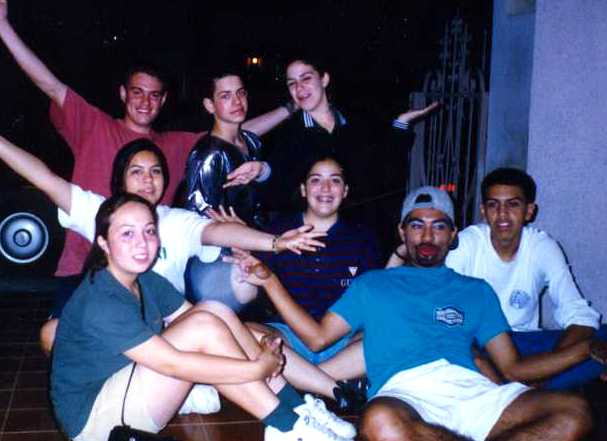 Al terminar de grabar la última escena cuando Mercutio (el amaya, el que está pintado, obvio) va llegando a la fiesta de Los Capuleto y le entrega la invitación a Romeo (Mario, el segundo de arriba de izquierda a derecha).