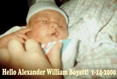 ![]() ![]() Our Little Alexander was born on January 14, 2000! The first millennium baby in our family, and my very first grand child! He came into this world weighing 8 pounds and 15 ounces, 22 inches long and a very healthy set of lungs! Oh, I guess I should mention the parents, my son Chris and Amanda. They are pretty proud too.