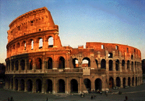 Move on to Rome. This building is one I'm sure you all recognize...it's the Colosseum! Anyone who has seen Gladiator has a pretty good idea of what went on here. It is a circus (meaning circular!) used for entertaining and the admission was free to keep the plabians busy. They put arches everywhere, which is the Romans' trademark architectural feature. What is cool about the design is that there are 3 layers/stories to it and each one has a different phase of architecture to it. The orders advance with each story: Doric, Ionic, and Corintian. One thing one might not notice by looking at pictures is that the concrete and metal used to build it is full of holes (and cats, apparently!). The metal was dug out of it to make weapons and bullets when needed. This will be toward the top of the list of things to see WHEN (!) I get to Rome. Of course, it's so big, how can you miss it?