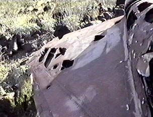 Below are six pictures I took of this crashed F4 Phantom fighter jet on January 2nd 1999 when I visited the crash site. The crash site is located 13 miles east of Parker, Arizona. It crashed in either 1978 or 1979. (unknown date). The cause of the crash is also unknown. Two pilots where flying the plane when they ran into some kind of trouble. To this day there are alot of broken and twisted mechanical parts laying around everywhere. Very few people know about this crash and where it is located. I'm trying to find out more information about this crash, so if you know anything, please let me know. The crash site is out in the western Arizona desert in the middle of nowhere. Notice that the military has painted the rear of the F4 Phantom the same color of the mountain so know one could be able to spot it from a distance. It used to be gray and had a USAF star on the tail.