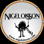 Black with white speckles, adjustable size; "Nigel Olsson" logo and the Stick Guy embroidered on front in white,