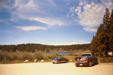 These first 2 were taken last labor day in the Big Horn Mountains at Meadow Lark lake '97' I was being silly wearing that paper hat. The nearest i can recall i was pointing at somebody water ski'ing |