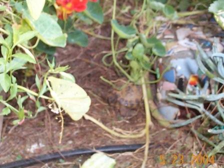 This is the new Russian Tortoise Pen. Lots of Nasturtium, Alyssum, and Mexican Primrose.