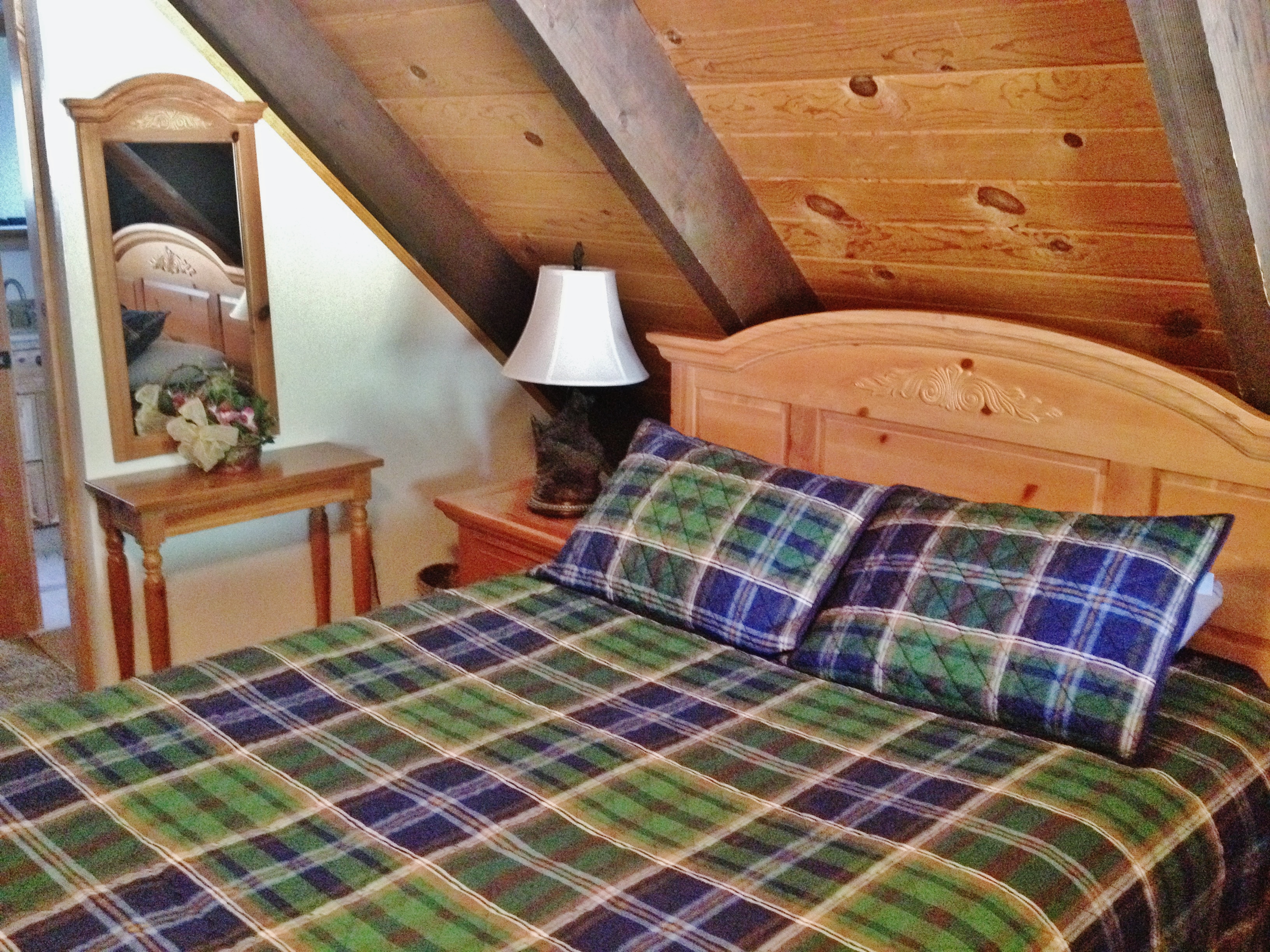 Adjacent to the upstairs bath, the loft has a Queen Bed, full-size dresser and ceiling fan with light for your comfort.