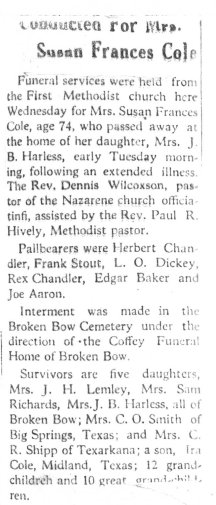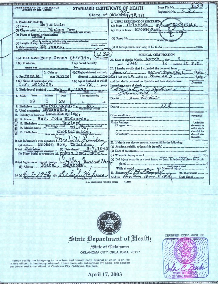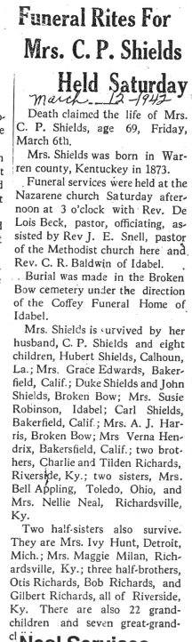 - Richards, Samuel Goodnight & Dorsey (Cole) Inscription on picture: Grandmas brothers boy, Grandmas Sisters girl. Grandma Shield neice & nephew who did live in Broken Bow, OK, both are deceased years ago - they married as first cousins.