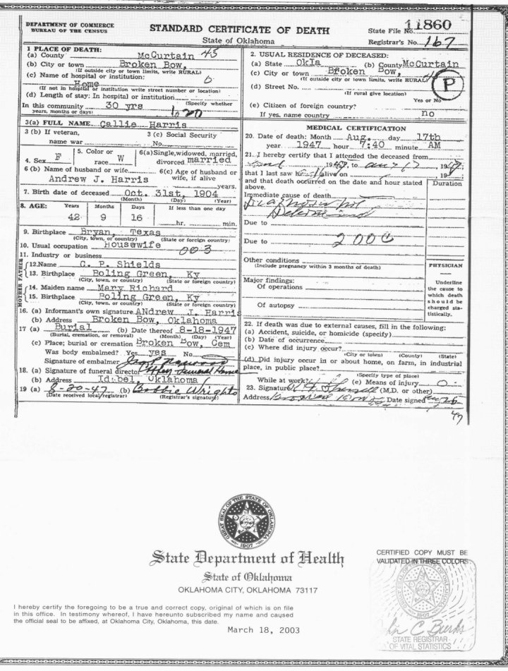 - Harris, Callie (Shields) & Leddy Mae Christine (Nelson)