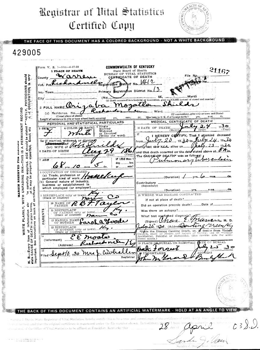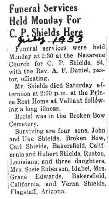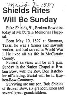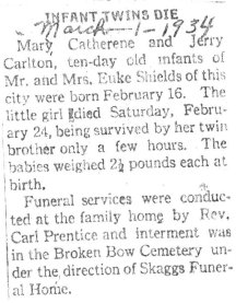 - Shields, Jerry & Mary (16 Feb 1934), Infant twins of Euke Shields