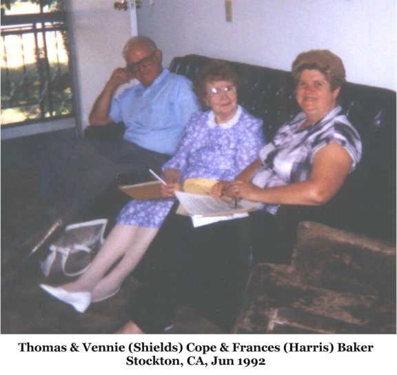 - Cope, Thomas & Vennie (Shields) & Frances Baker (June 1992)