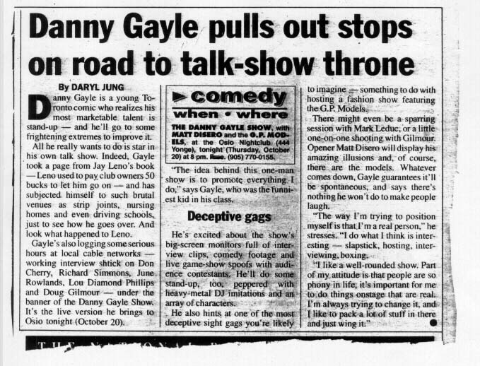 "DANNY'S A GAYLE FORCE TALENT!" - The Toronto Sun