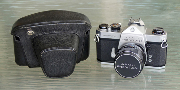 The Asahi Pentax SP, commonly referred to as the Spotmatic was introduced in 1964. It was the first production model of their 1960 prototype, the world’s first SLR with through-the-lens metering (TTL). In the U.S., the camera was imported by Honeywell and carried their name on the pentaprism. The SP body eventually became the K-1000, a favorite of the high school and college photography student due to its relatively modest cost, simplicity, and all-manual controls generally required by photography instructors. Ringo Starr used this camera as well.