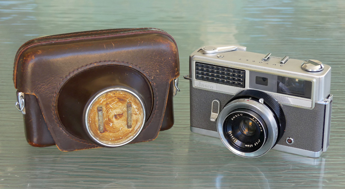 The origins of Agfa (the Aktien-Gesellschaft für Anilin-Fabrikation company) can be tracked to 1867. In 1925, as a part of temporary merger into IG Farben, Agfa received the Rietzschel company. Later, in 1928, AGFA merged with an American company, Ansco which was result of a merger between E. and H.T. Anthony & Co. and Scovill & Adams in 1902. Its name was Anthony and Scovill until 1907. The resulting company, Agfa Ansco, continued with production of models from both the Ansco and Agfa lines. In 1939, the company changed its name to GAF (General Aniline & Film), but the Agfa and Ansco brands were not dropped. In 1943, Agfa split off from GAF, and GAF continued to manufacture Ansco cameras until 1967. The Agfa Ansco PB20 Plenax was a very popular camera and affordable to the average American. I like the simple Art Deco design on the sides.