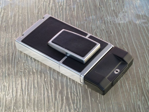 I bought an Electro 35 GT in 1970 when I lived in Japan. It was stolen from my house about 15 years later and I replaced it with this near-mint example which came with the complete kit including telephoto and wide angle lenses. The original battery used in this camera is no longer available but by putting a spacer in the battery compartment, a current equivalent voltage battery works. I took a roll of film with this camera and it worked fine.