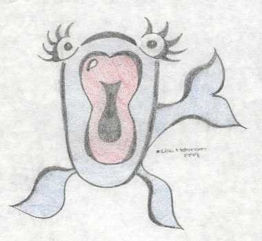 A slightly colored pencil drawing of a cartoony fish...done on really bad sketching paper