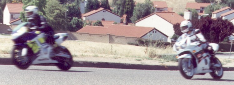 | Just when we started to warm up our tires, we got a visit from the local police department. Apparently, a few of the residents reported a group of hooligans making too much noise, tearing up their streets and performing dangerous maneuvers. Could that be us??? "No way! Not us, officer. It's such a beautiful day today that we decided to find a nice, quiet location to take pictures of our newly cleaned motorcycles, sir." |
