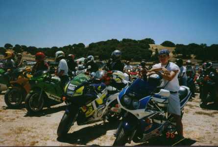 Luguna Seca Raceway, Monterey, CA - WSB Superbike Races '96. Ready and waiting for another lap around the track, but this one is a real race track. Exciting from start to finish, from the hairpin Turn 2 to the infamous Corkscrew. What a track!