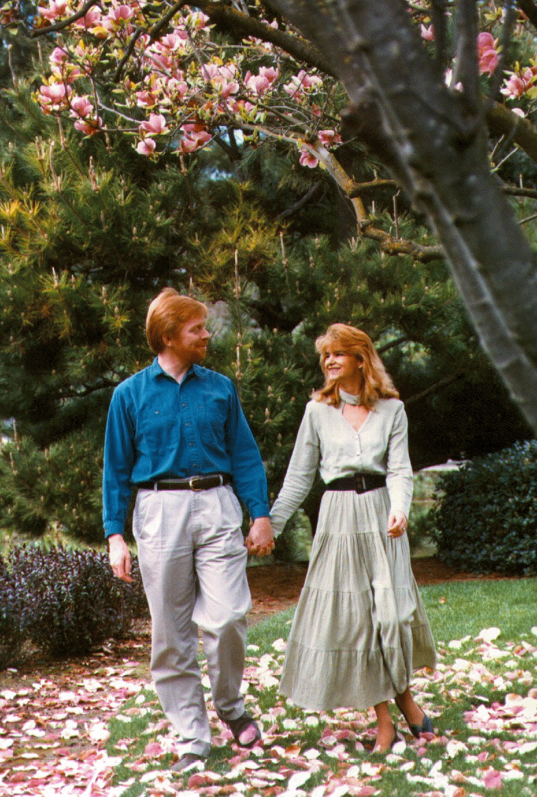 Then the big day came on January 17, 1998 when we became engaged. George took me on a 10 mile (yes! 10 miles) hike through the Big Basin Redwoods where we came to a beautiful waterfall called Berry Creek Falls. We had lunch at the top of the falls and then hiked down to the viewing platform. George got down on one knee and proposed to me next.