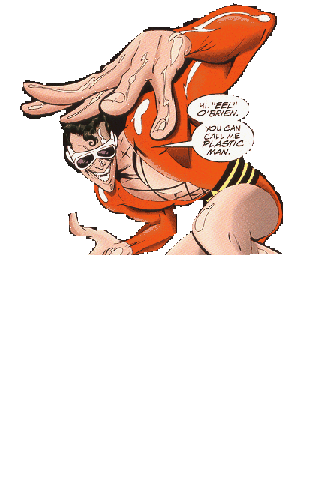 Eel was an orphan turned thief. One day, while raiding Crawford Chemical Works, Eel was double-crossed. He was shot by his fellow robbers, and fell into a vat of chemicals. After stumbling his way out of the plant, he walked up a nearby mountainside, and collapsed. When he awoke the next morning, he was in the care of a secret group of monks who attended to his wounds. When Eel stretched his arms after getting out of bed, he found that they just kept going. He decided to use this unorthodox power to get back at his former partners, and did, sending them to prison. Finding pleasure in doing this, Eel decided to fight for right with his newfound powers under the moniker of Plastic Man. Soon after he was drafted in the JLA for unknown reasons.