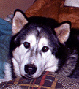 CJ's breeder is Kimberly Meredith, Atanik Kennels. CJ is out of Am/Can Ch. Atanik's Snopaw I'm Awesome, ROM "Awesome"and Ch. Atanik's Kinda Koona, ROM "Wowie". CJ was her sire's 16th champion and her dams 8th. She was bred twice to Ch. Tonopaw's Awesome Ayuskeemo. Out of five puppies two became champions and two others were pointed. CJ is the granddam and great granddam of several champions, including Best in Show winner Ch. Rogue's Akutag Quianna.
