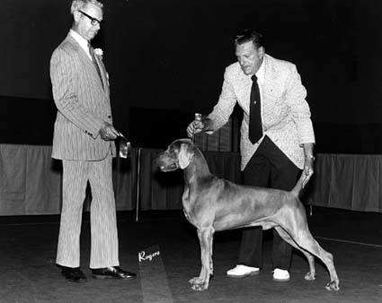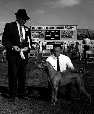 Bat was out of Ch. Gwinner's Sportwheel and Ch. Von Fredrick's Dusty Girl, CDX. He was handled to his championship by the late Tony Gwinner.