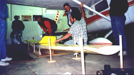 The amount of weight was calculated by first determining the gross weight at the G loading desired. For this test, we used a gross of 1,250 pounds at 4 G's. This comes to 5,000 lbs.