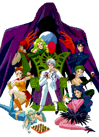 This is the Black Moon Family. Their family crest is completely opposite from the of the Moon Family's. It is a black, upside down moon. These villains are from the future and came back in time to defeat the Sailor Scouts so that they could take over the Moon Kingdom of the future.