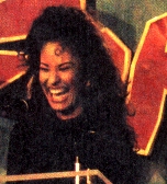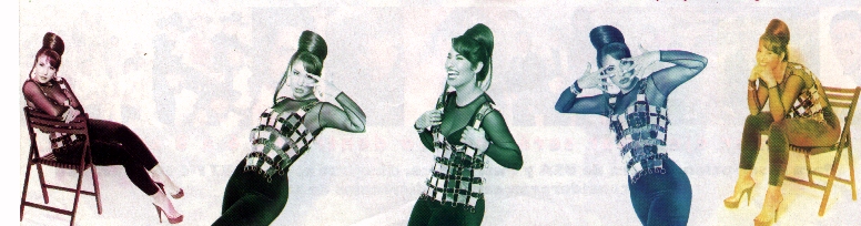 40. Singing in Black bustier and bellbottoms