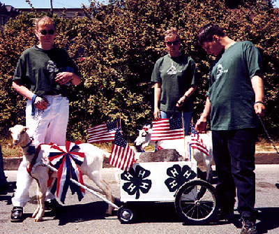 We have a very large and active pygmy goat group. Our group participated in the Teddy Bear Parade, oranized a petting zoo at small animal day, put on a car wash and bake sale (with our rabbit group), and sponsored a family at Christmas time last year. Most of our members participated at our county fair.