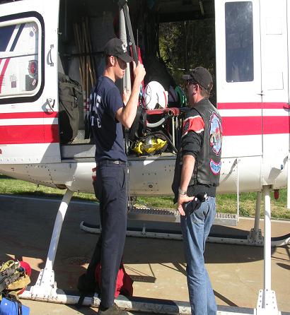 ------------------A CDF fire captain explains to Aldo how the helitack crew works ----------- Group pictures in front of a 212
