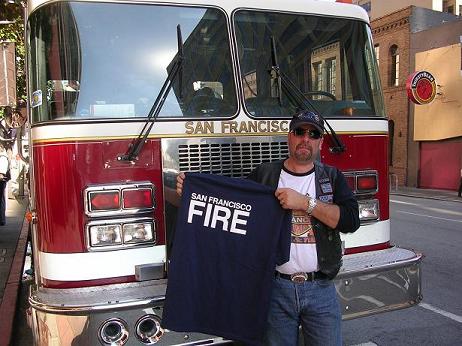 Aldo proudly stands in front of 1-Engine downtown San Francisco