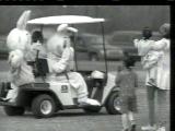 As he leaves Palm Sunday Mass holding this symbolice palm franze, President Clinton can't help