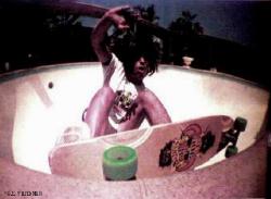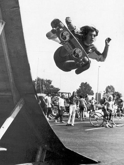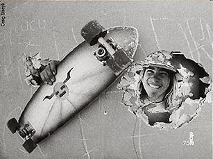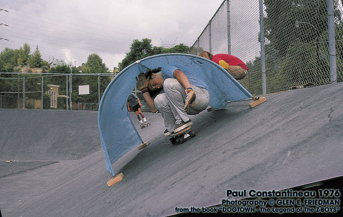 Paul Constantineau is a man of few words. It’s not that he is uncooperative, though, since Paul will answer any question you ask him in 25 words or less (usually less). He exudes an easy going self-confidence, and is definitely much more into doing it than talking about it. It is this confidence blended with an innate sense of style and a go-for-it attitude that allows Constantineau to show up at a new spot with the boys, rip it apart, blow the locals out, never say a word, get back into the car, and split. Paul was born in Ontario, Canada, where he lived until six years ago, at which time he moved to Santa Monica, California. Shortly thereafter, Constantineau began the local activities of skating and surfing. He learned the fundamentals from friends like Bob Biniak, Tony Alva, Jay Adams, Stacy Peralta, Wentzle Ruml, etc., and he still considers them to he his favorite skaters. Paul excelled in the action winter sports of his native country, with particular emphasis on ice hockey, skiing and speed skating. Constantineau is rumored to be an excellent hockey player (position, right wing), who might possibly be bound for a career in the pros. When questioned in this direction, Paul allowed that "I guess I play okay." He feels that the similarities of these winter activities helped him to make the transition to surfing an skating since "they are all similar in balance and motions." Paul "skates just for fun," although he is aware of the commercial possibilities, and is open to them. He has appeared in several films, including Super Session, Go For it, 5 Summer Stories Plus 4, Fluid Drive, and Freewheelin’, in which he also performed some action-camera work. Constantineau adds that he is "particularly into the financial rewards" of film making. Paul is an all-around skater, and prefers "any good bank or pool" for skating terrain. For banks and pools, he uses a 26" Fibreflex kicktail, with Bennett trucks and Sims Pure juice wheels. For slalom he uses a 28" Fibreflex board with Bennett Pro trucks and Road Rider #4 wheels; and for downhill speed he uses a 28" Fibreflex with Tracker trucks and open-bearing mag centered wheels. Constantineau surfs "just about every day" in California, and last winter he went to the Islands for the first time. He stayed with the illustrious Adams family, and skated occasionally at Wallos and Kammies Drain, spending most of his time in the water at Laniakea and Gas Chambers. He currently rides a 6’6" stinger swallow shaped by Mike Perry, and is looking to return to the tropics "as soon as possible." Paul advises that "when skating banks, ride them like a wave, instead of trying to do freestyle tricks on them. Banks are really just cement waves." So if you see an amazingly fluid skater flashing through your local bowl, it just might be Paul Constantineau. If you wonder. . .you’d better ask quick, ‘cause he will never tell you on his own.