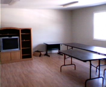 It is equipped with a 27"T.V,V.C.R.overhead projector,satellite television,tables and chairs for up to 25 people