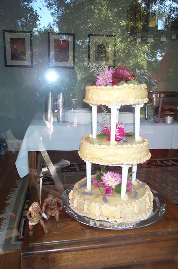 The Wedding Cake (Mocha with almond paste coating, catered by Dining With Andre from South Pasadena)
