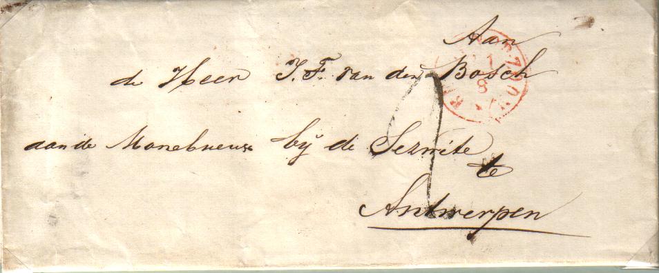 Fig 1. 1860. Unfranked letter Emmerich-Arnhem
