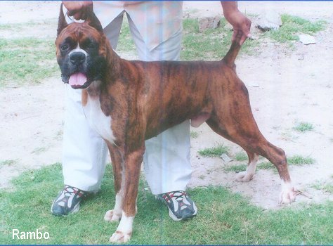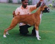 She has an impressive show record which includes Puppy Of The Year for 2001 in All Breed standings. She has won over 12 CC's as a puppy and had been placed 4th BIS & Best Puppy in Show at the National Boxer Speciality show held at Chennai.