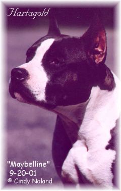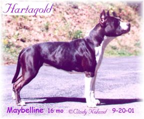 | Dam AKC CH. Patton's White Rock Penny (Blue Brindle & white) |