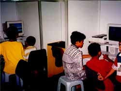 As we were wandering down streets looking for someone who made kites, we came across a cute cybercafe. Well, it was called a cybercafe. It was someone's house and they had a few computers with internet connections, as well as a refrigerator with a few bottles of coke. When we walked in the kicked the kids off the computers so we could use one. Those kids were pretty focused on the games.